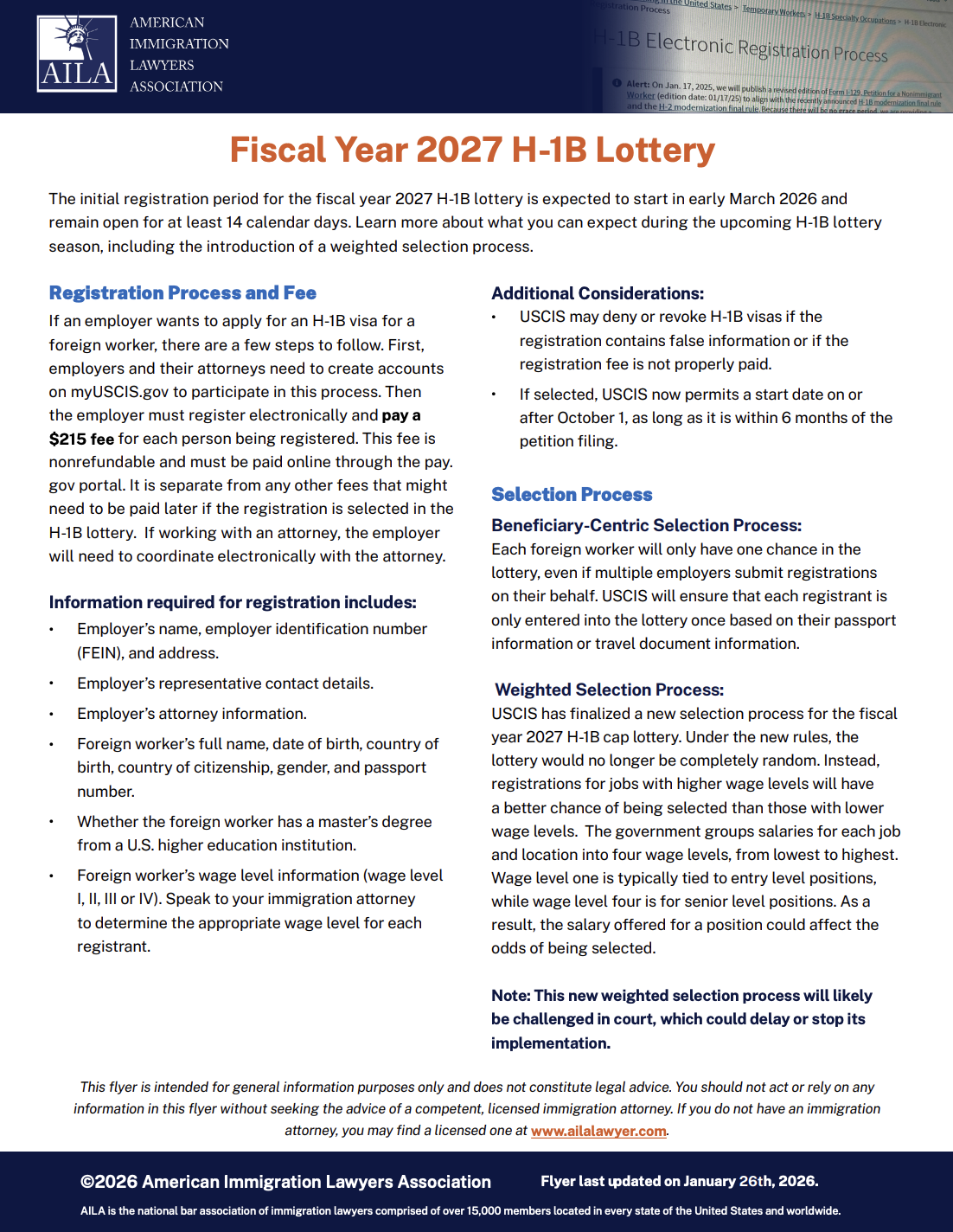 Fiscal Year 2027 H-1B Lottery