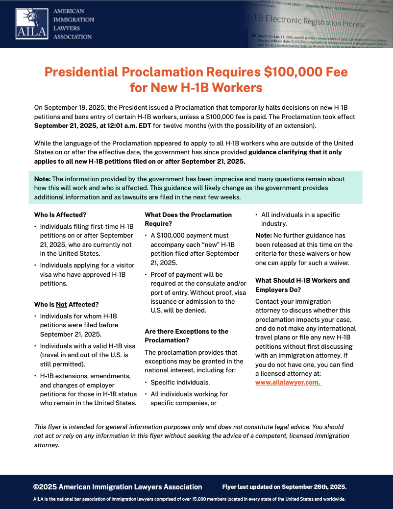 Presidential Proclamation Sets $100K H-1B Fee